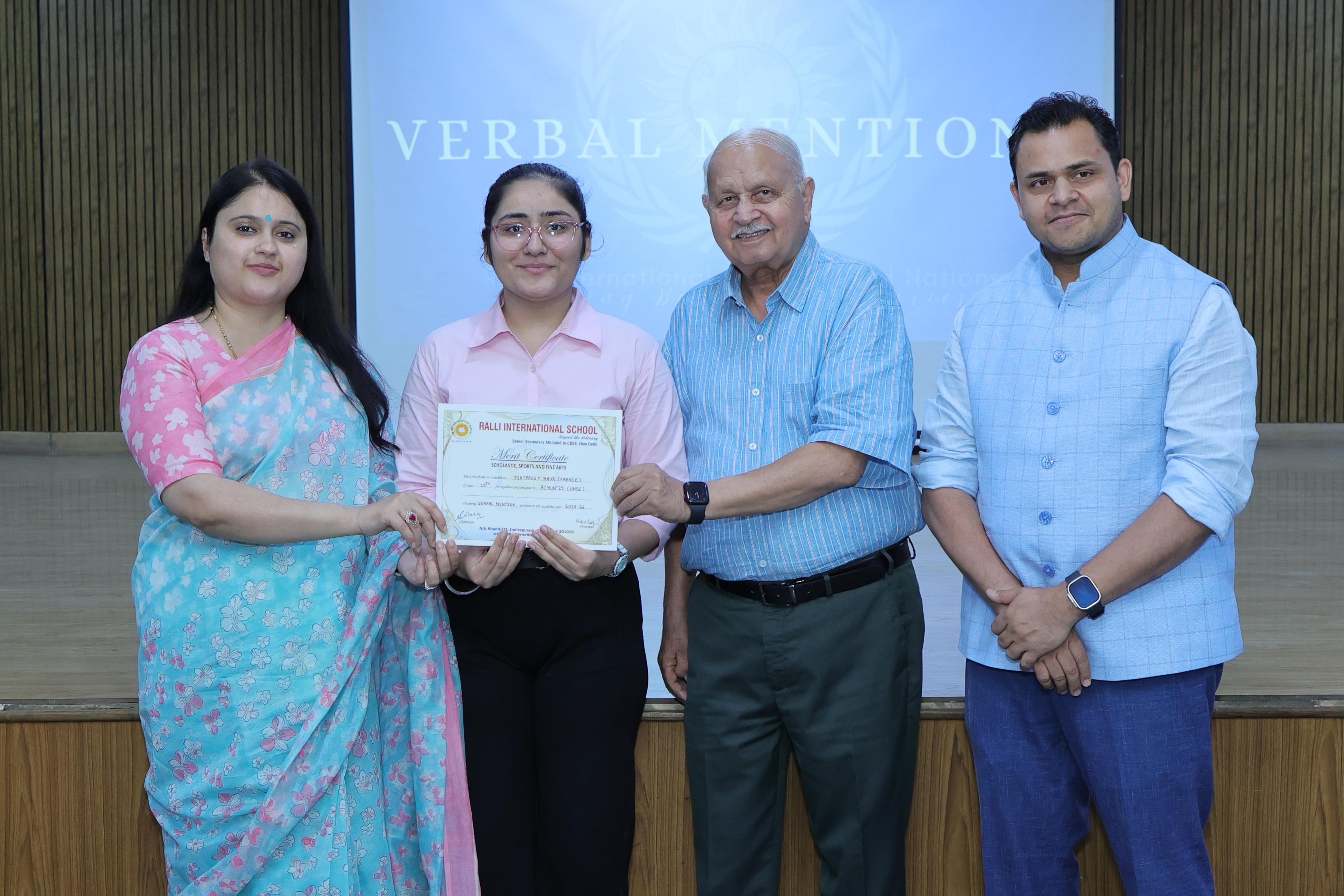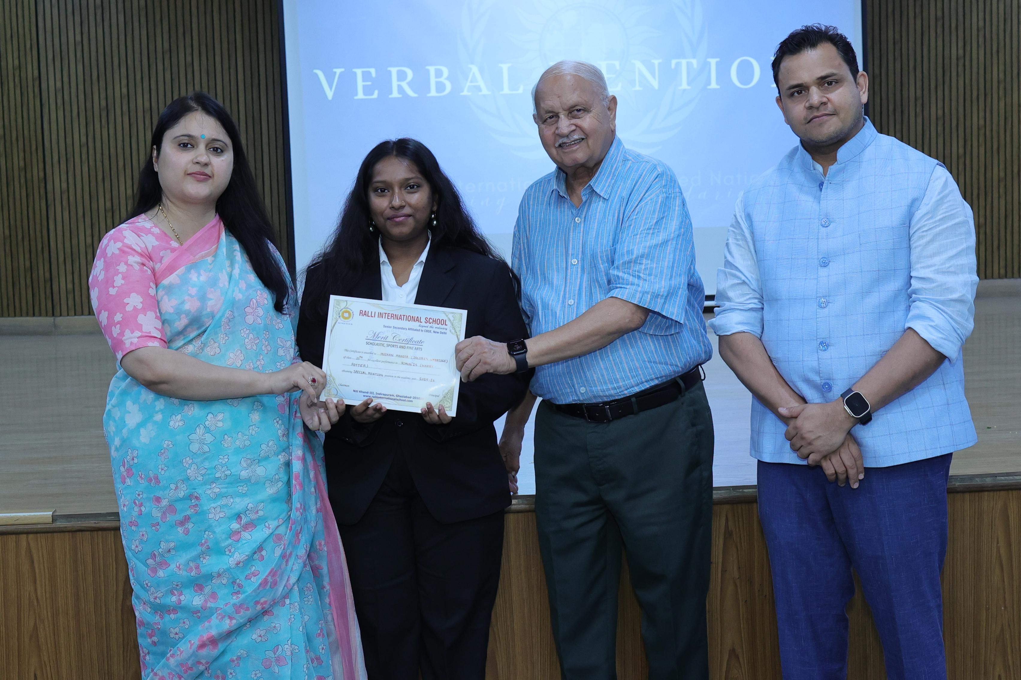 flair. Delegates are recognized for their outstanding performances, with awards for Verbal Mention, Special Mention,