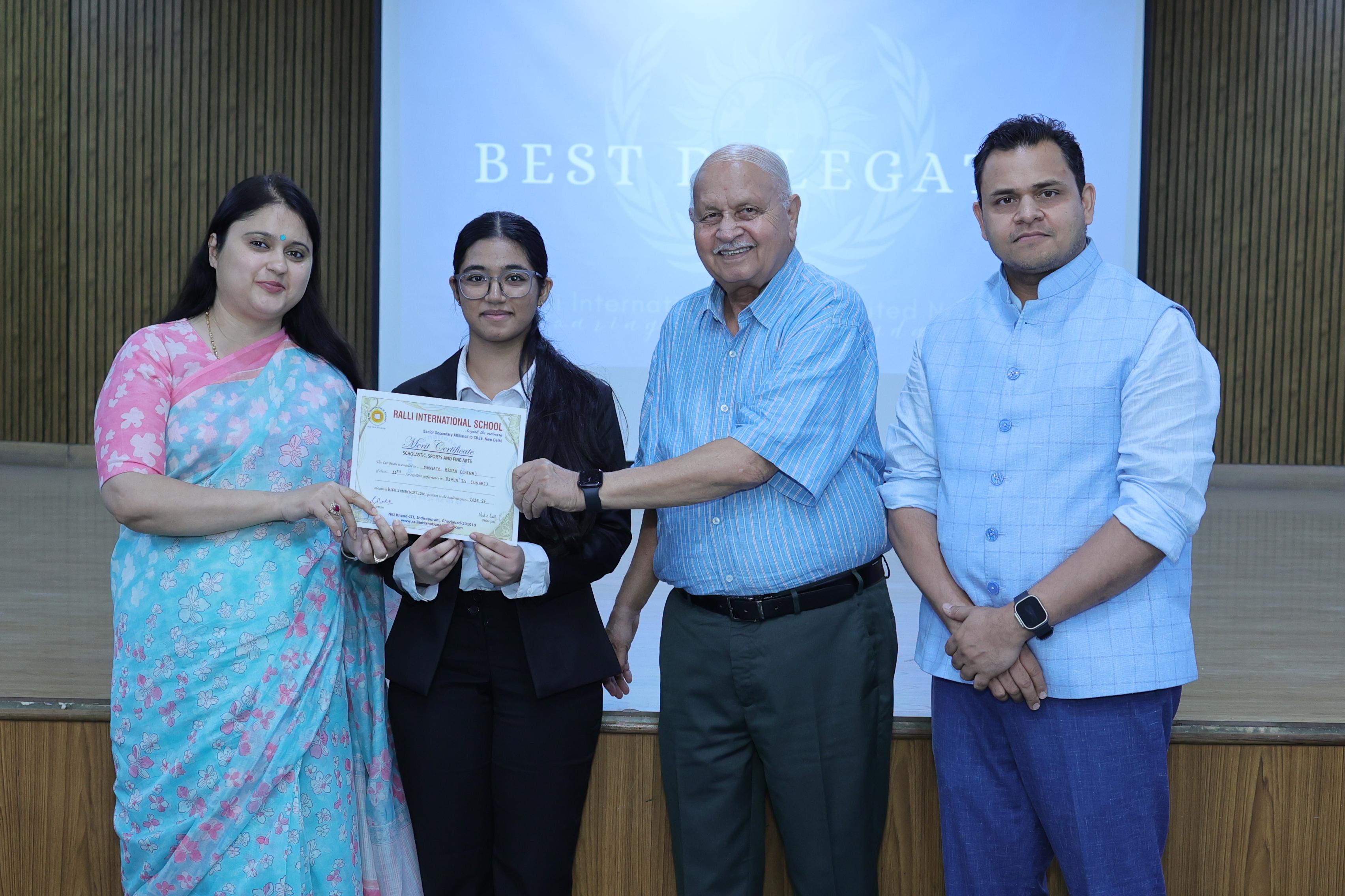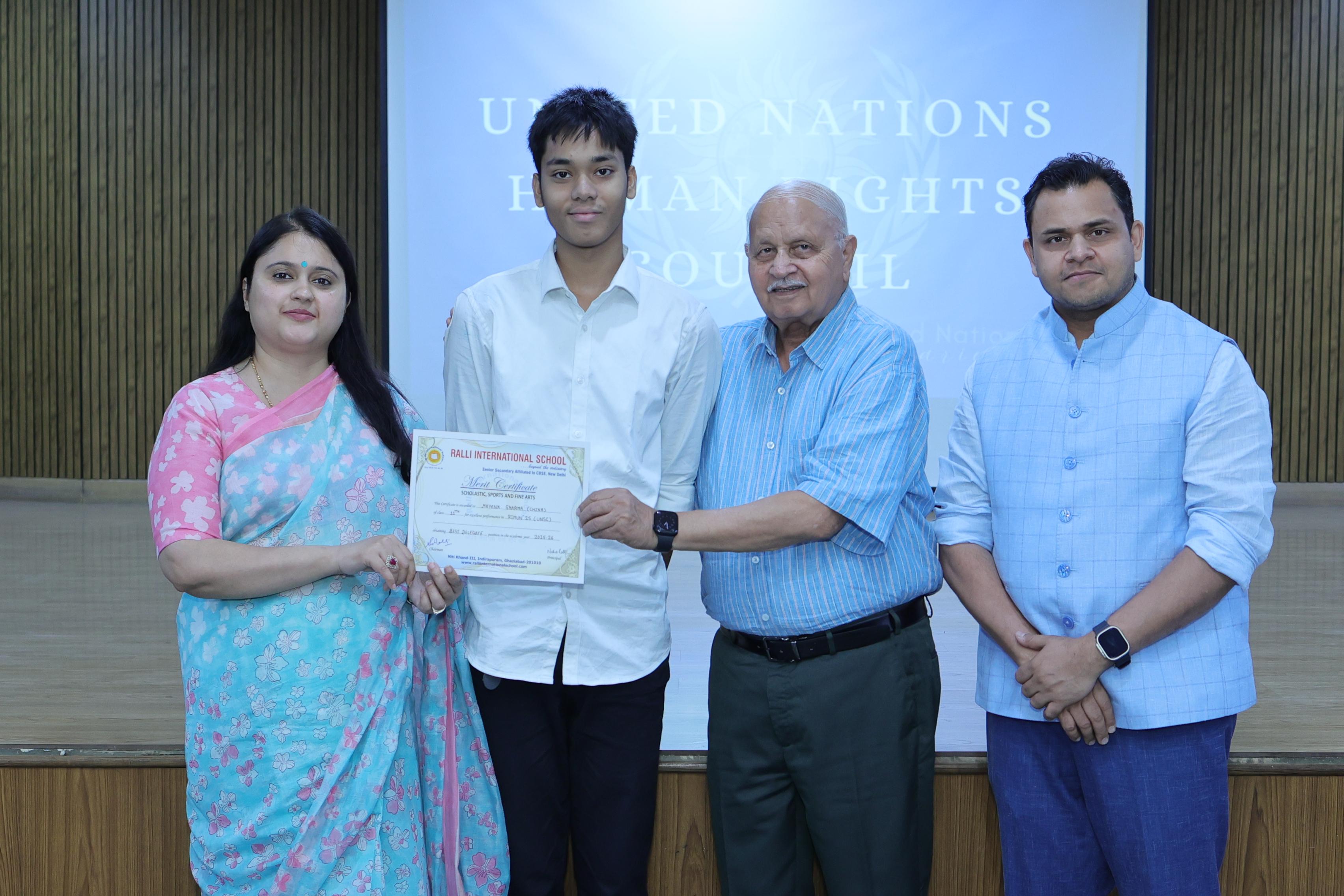 | 1. | Mayank Sharma | 11 A1 | BEST DELEGATE | CHINA |