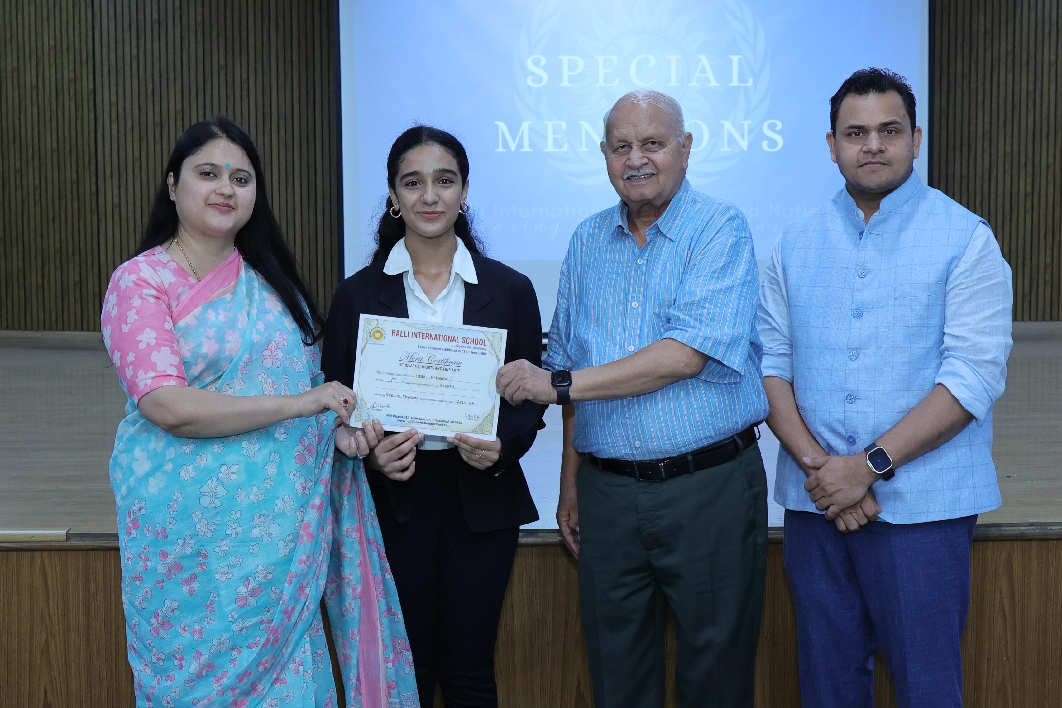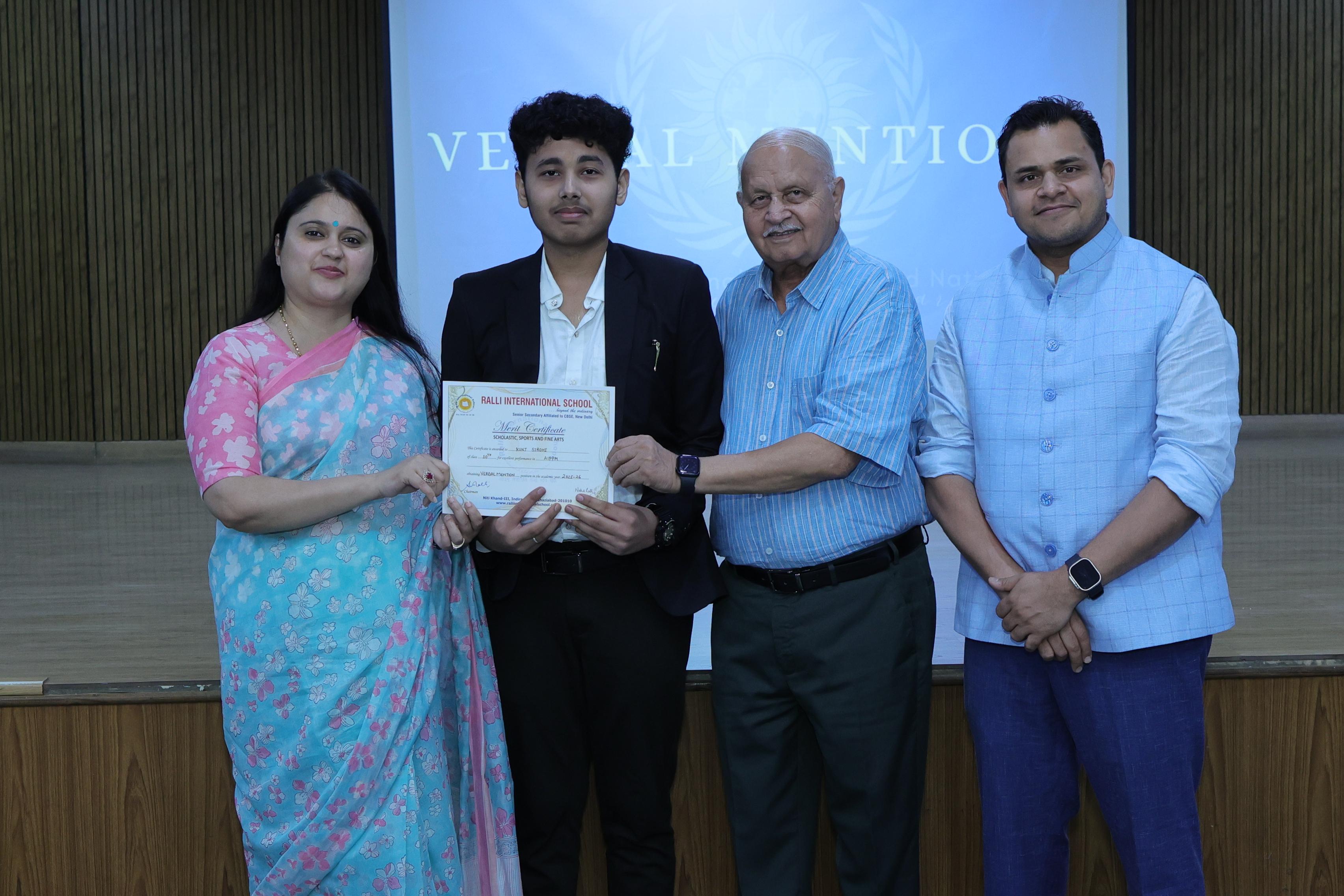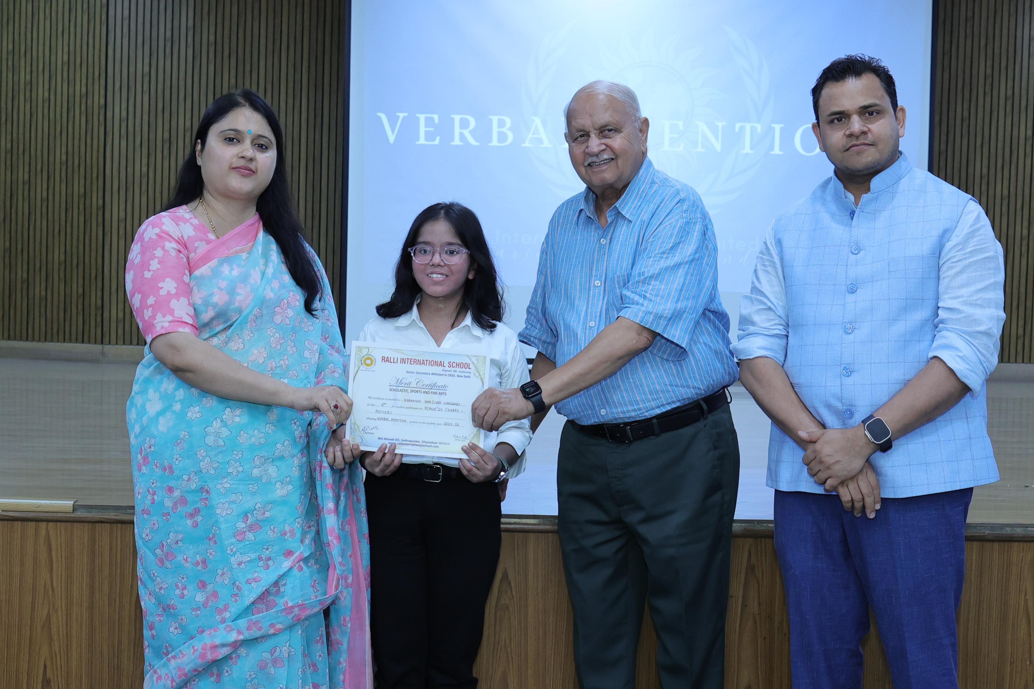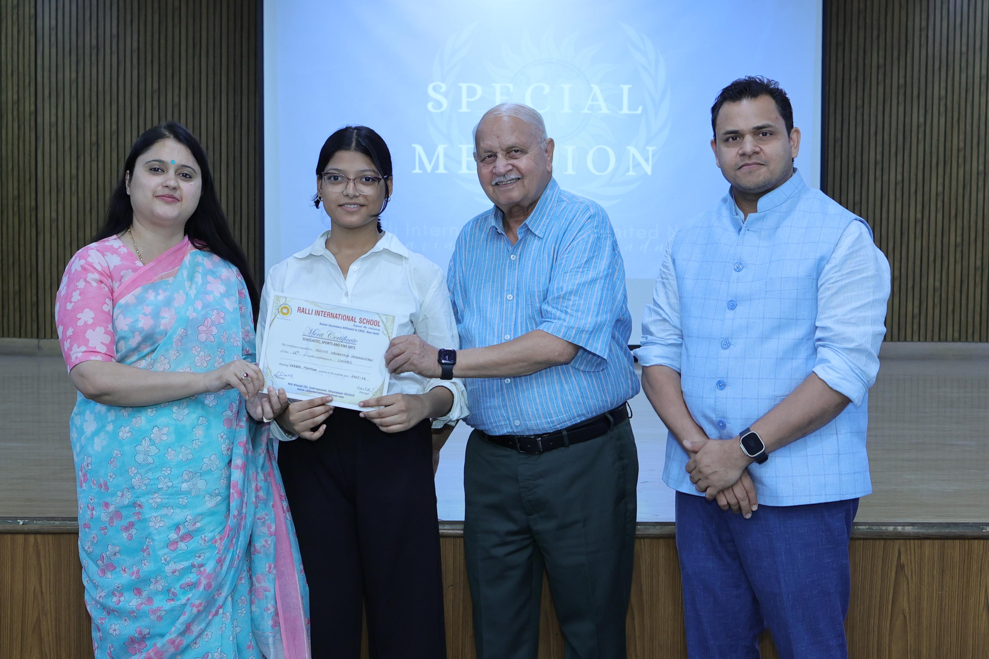 Students were honoured under various categories such as Verbal Mention, Special Mention,