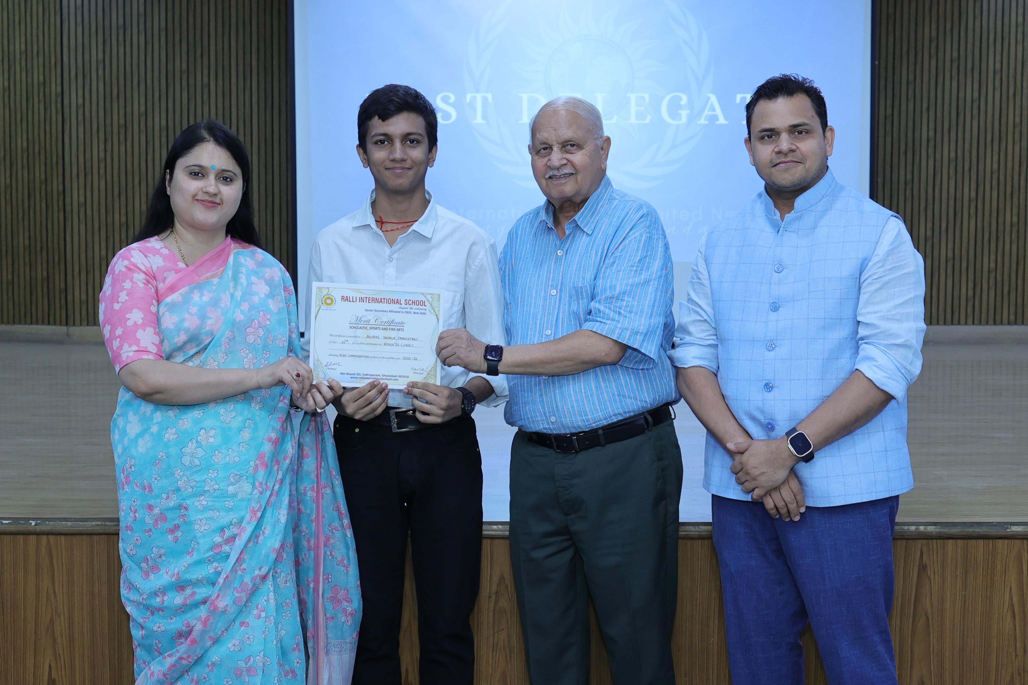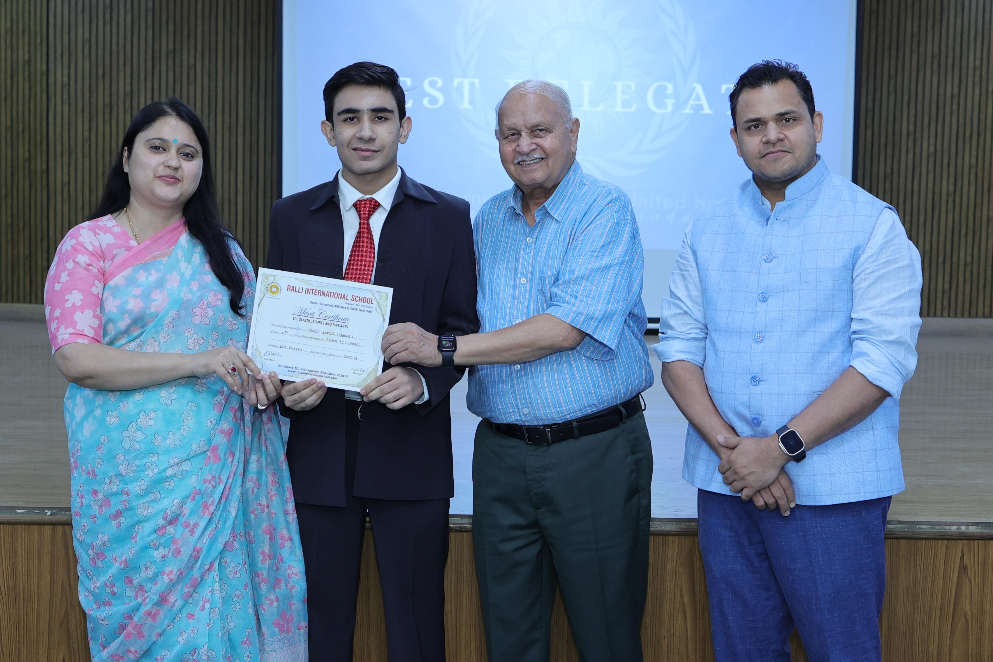 | 1. | Mayank Sharma | 11 A1 | BEST DELEGATE | CHINA |