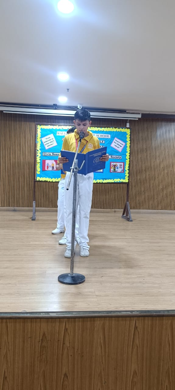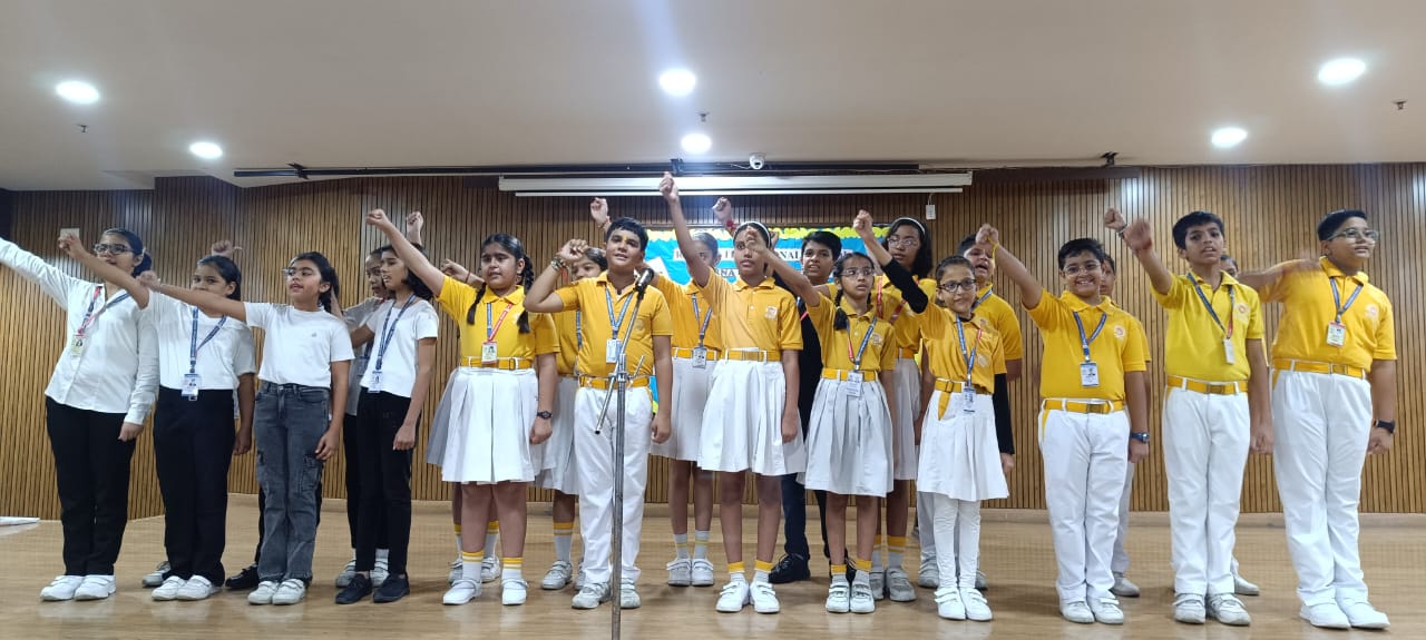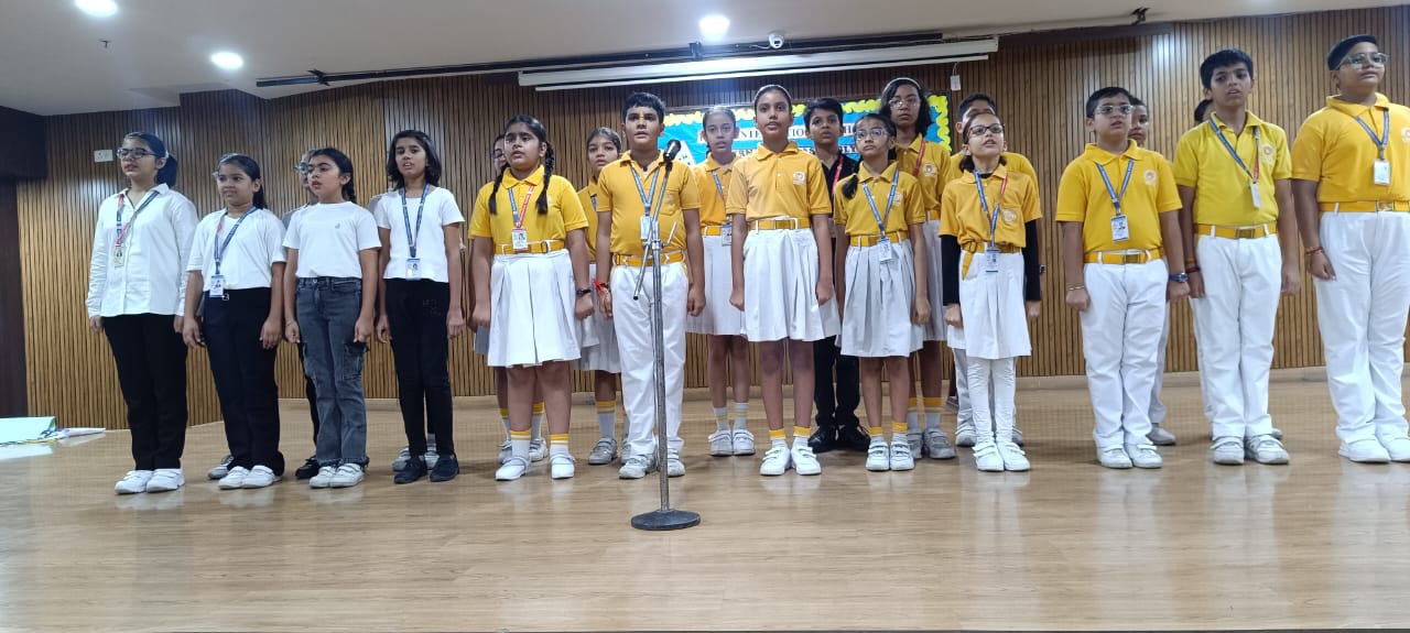 NATIONAL ANTHEM – Veer Pratap Singh (IV A), Atharv Singh (IV B), Viraj Chaudhary (III D), Amyra Kaur
