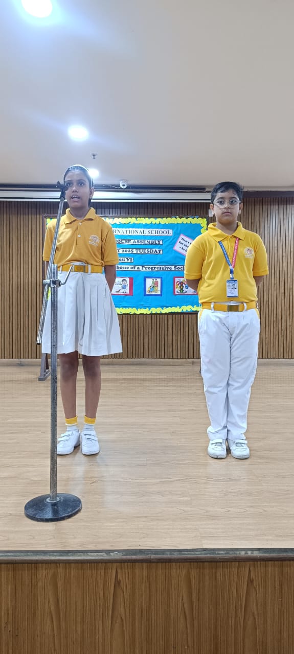 The assembly started with an electrifying welcome by the young anchors, who confidently stepped onto the