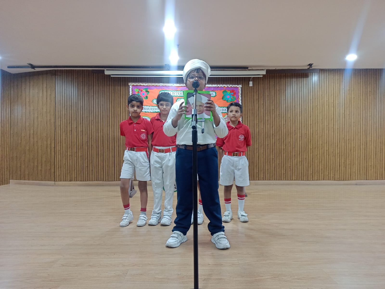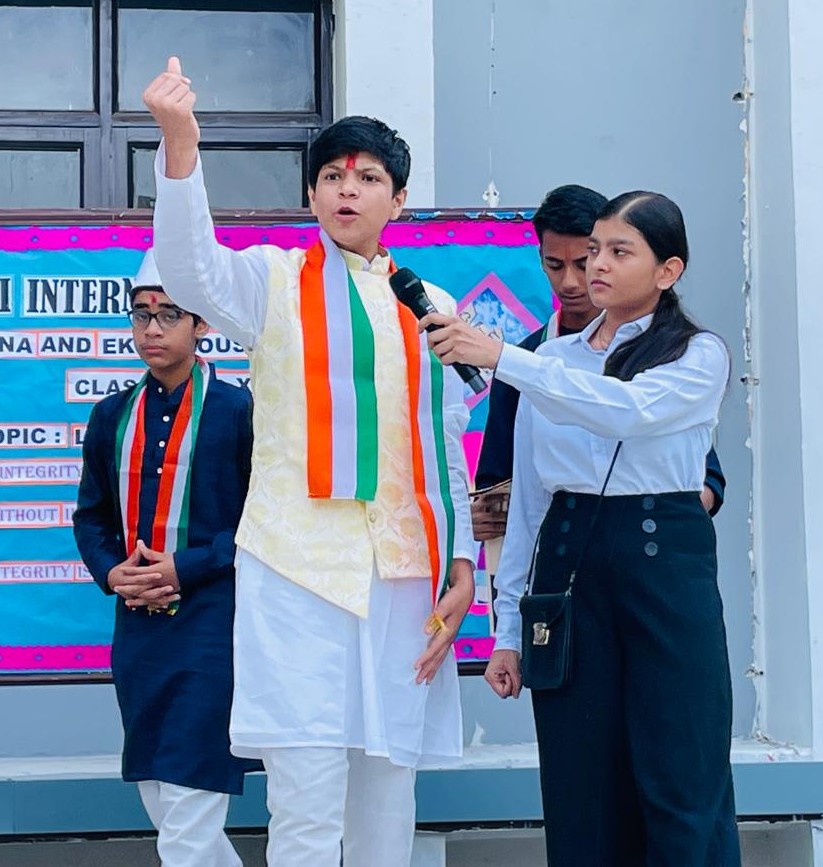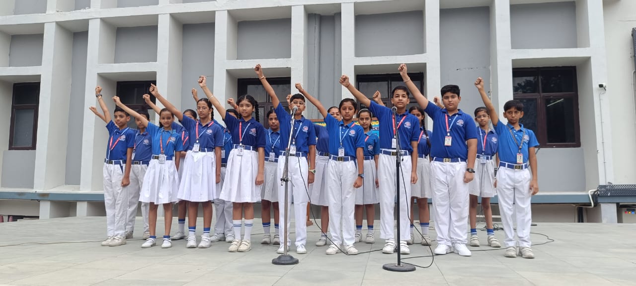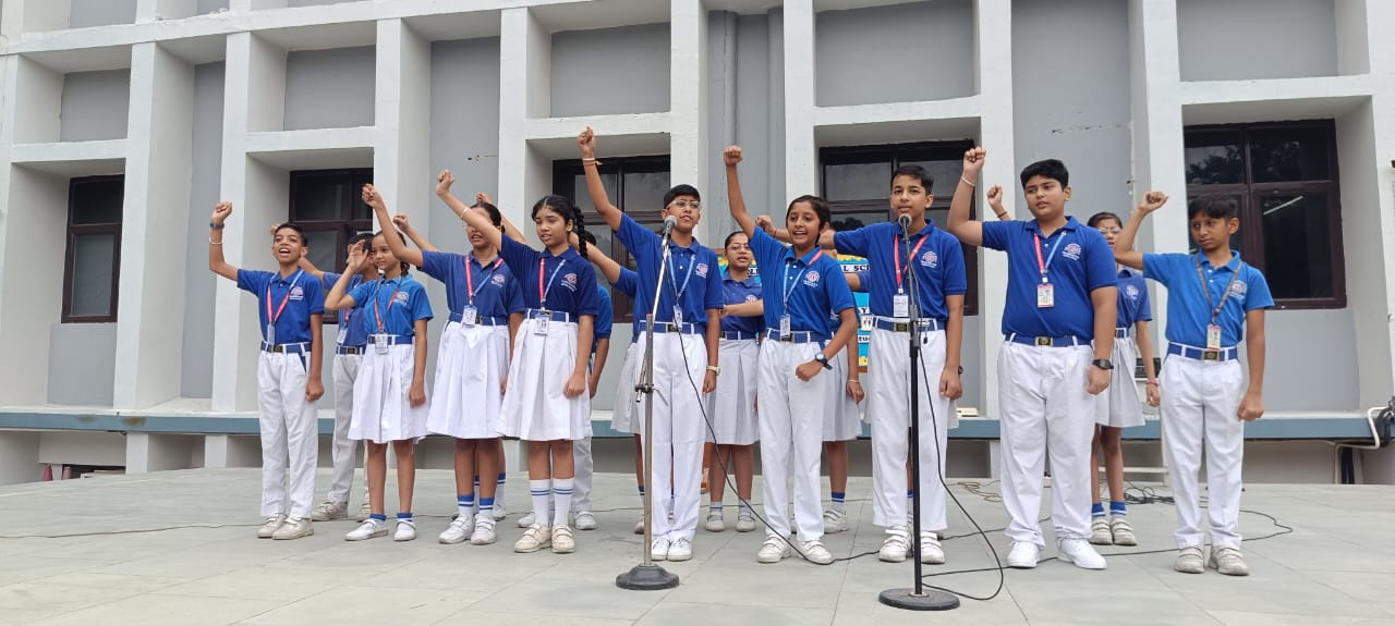 NATIONAL ANTHEM – Veer Pratap Singh (IV A), Atharv Singh (IV B), Viraj Chaudhary (III D), Amyra Kaur
